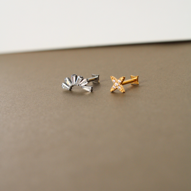 Newly pierced ears are sensitive, so it’s crucial to avoid heavy earrings that could pull on the piercing and cause discomfort or elongation of the ear lobe. Lightweight designs, such as studs and small hoops, are ideal because they won’t strain the piercing and will feel comfortable enough to wear 24/7.
