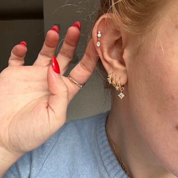 The sets include 3 earrings total, so you may want to buy 2 if you want to wear a set on each ear (but we love to spread ours over both ears as well!)