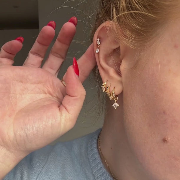 This Dangle flatback stud gold is perfect for cartilage and lobe piercings. Crafted with a dangle crystal charm on top and a flatback/labret stud, it provides a secure, poke-free fit.
