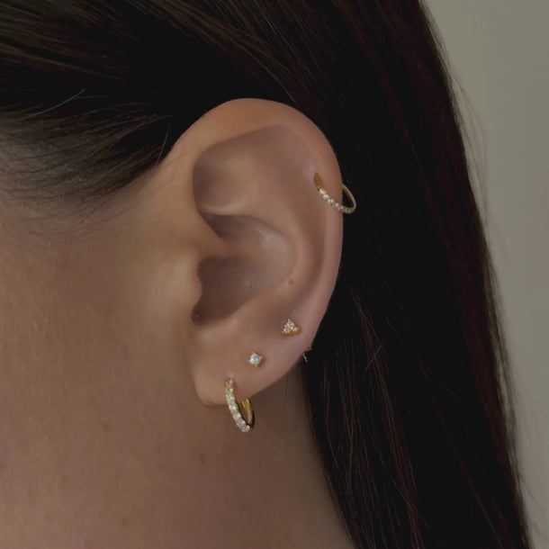 Looking to add that perfect finishing touch to your ear curation? Meet the Eternity Pavé Clicker! A dazzling row of white cubic zirconias, expertly claw set for maximum sparkle, wraps gracefully around the hoop, giving you that extra shine you’ve been craving.