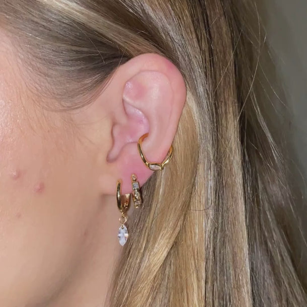 A paired set featuring one marquise stone on a slim drop. Refined, lightweight, and stack-friendly.
