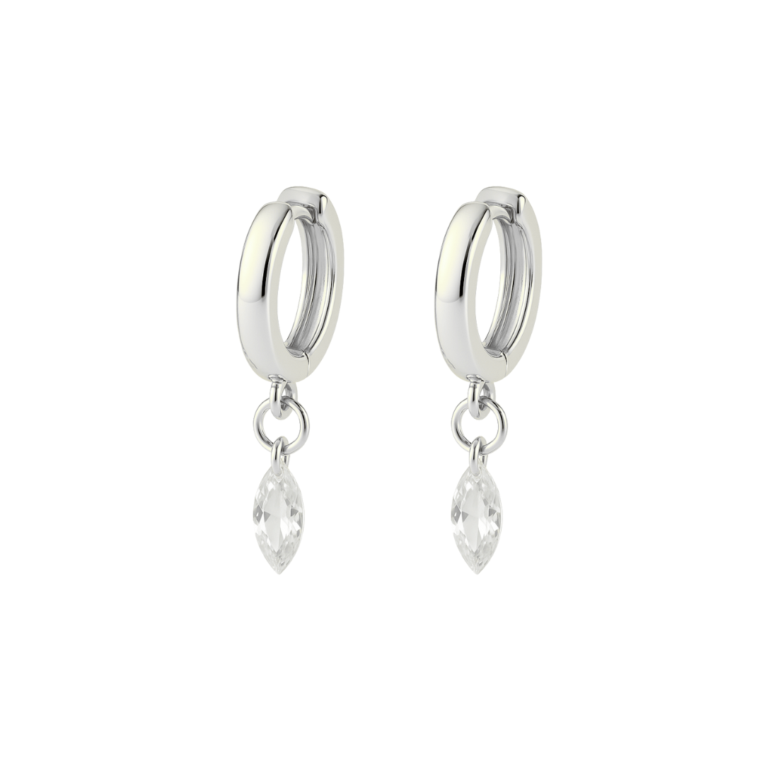 A paired set featuring one marquise stone on a slim drop. Refined, lightweight, and stack-friendly.