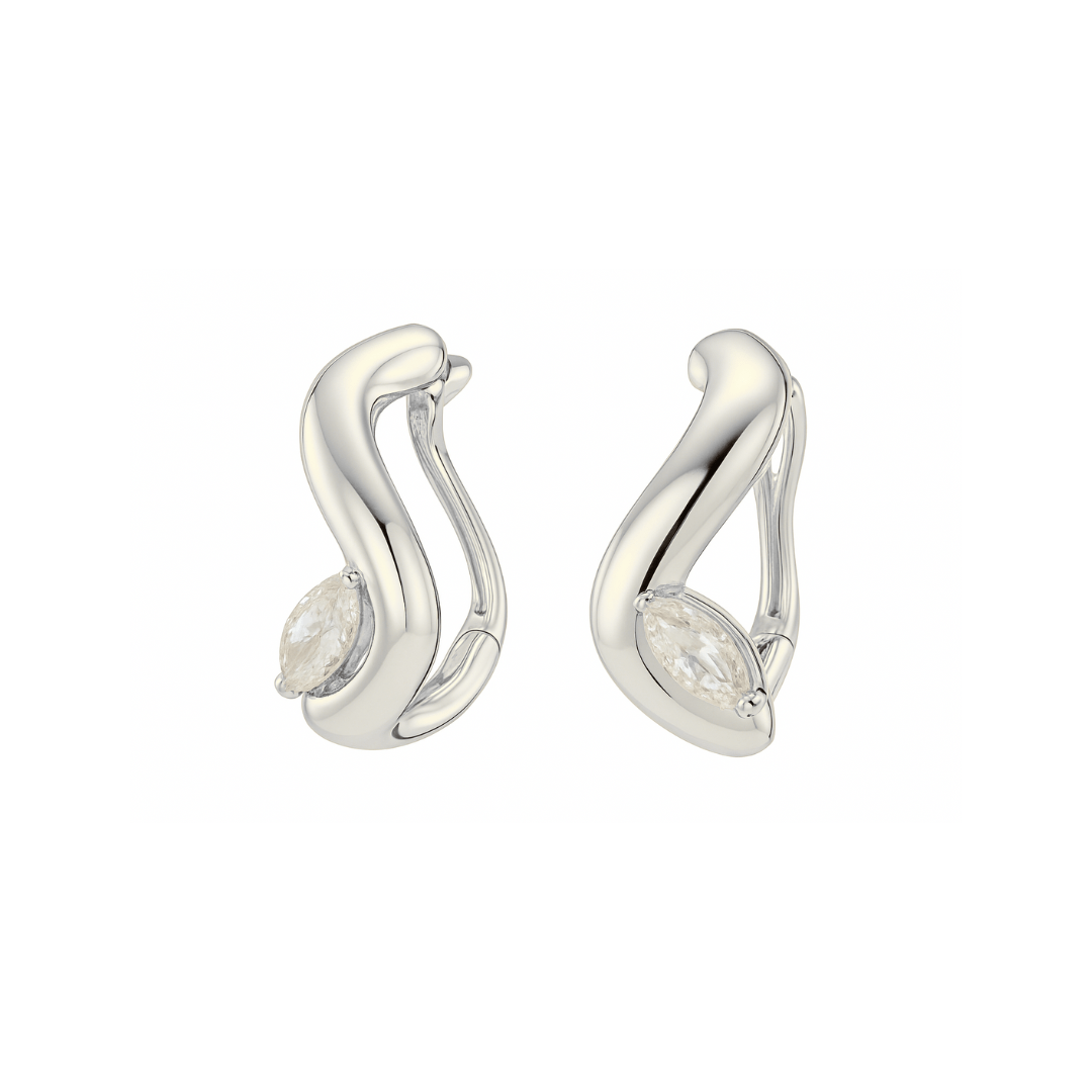A pair of hoops with a fluid ripple design and a centred marquise cut. Larger and more structural than our huggies - perfect for layering or wearing solo.