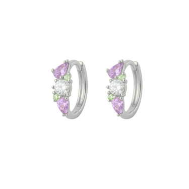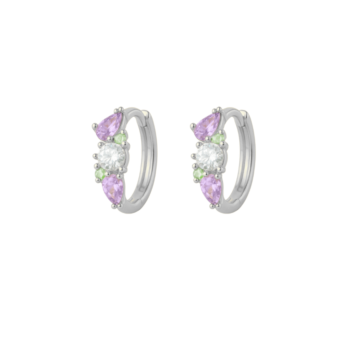 These dreamy silver huggies bloom with lilac teardrops, dew-green stones, and a sparkling centre crystal. Tiny but eye-catching, they hug your lobe just right for all-day wear (yes, even to sleep).