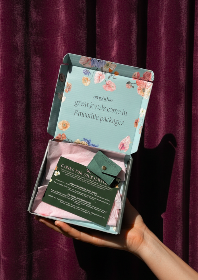 A: All Smoothie orders come in our signature treasure box packaging with tissue paper and include a free embossed travel pouch, ready to gift straight away.