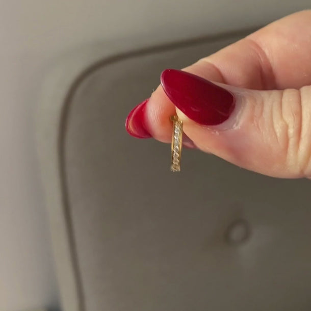 This pavé hoop flatback is designed to give the look of a classic huggie, with the everyday comfort of Implantium™. The softly curved silhouette hugs the ear closely, while precision-set crystals add a refined line of sparkle that feels polished rather than flashy.