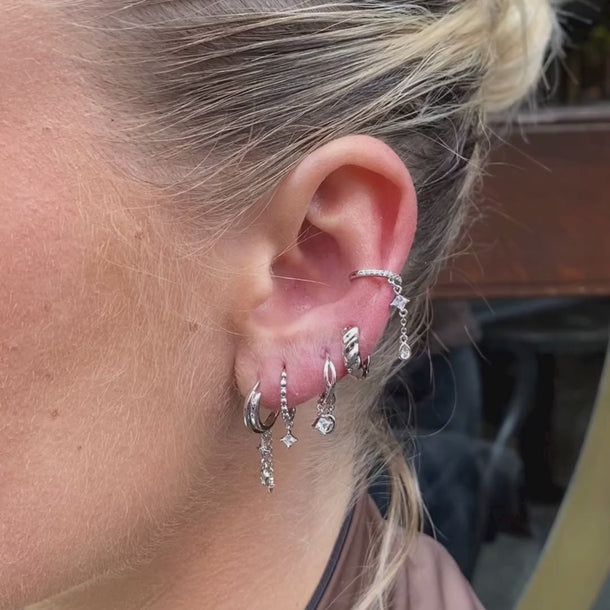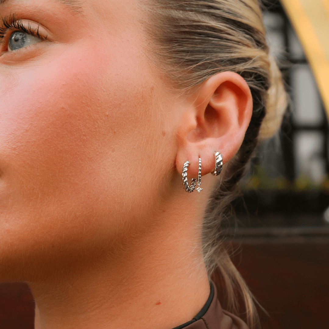 These Venus huggies in gold feature delicate textured bobbles and a small sparkling charm, adding a subtle touch of shine. Perfect for layering in an ear stack, they bring effortless elegance and charm to your everyday look.